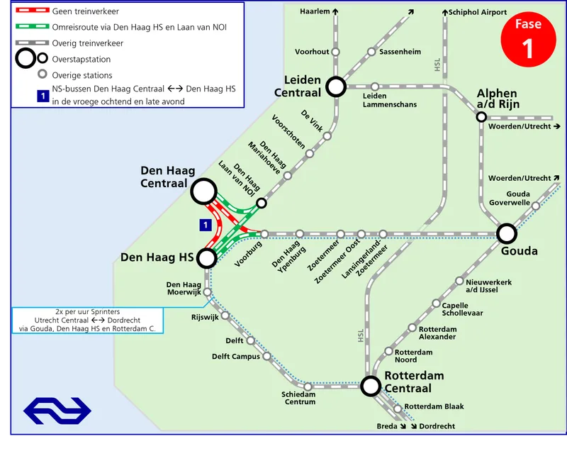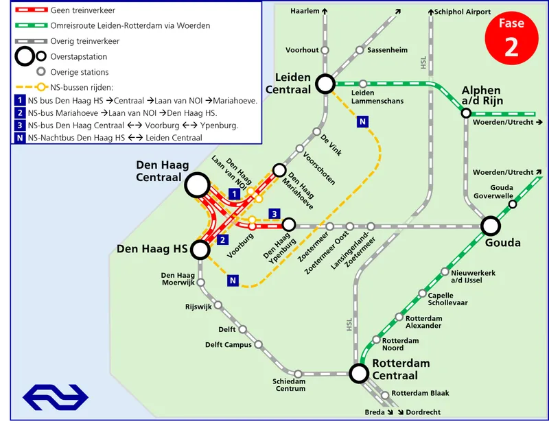 NS zet bussen in tussen Den Haag HS en Den Haag Mariahoeve (via Den Haag Laan van NOI)