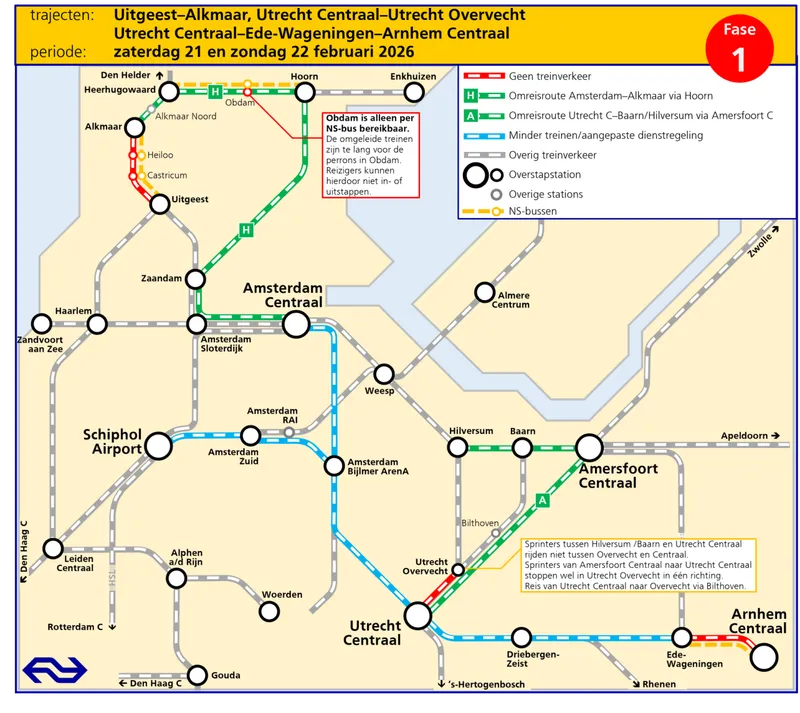 Van 24 februari t/m 1 maart wordt er ook in Amsterdam aan het spoor gewerkt. Lees hier meer over de werkzaamheden in Amsterdam .