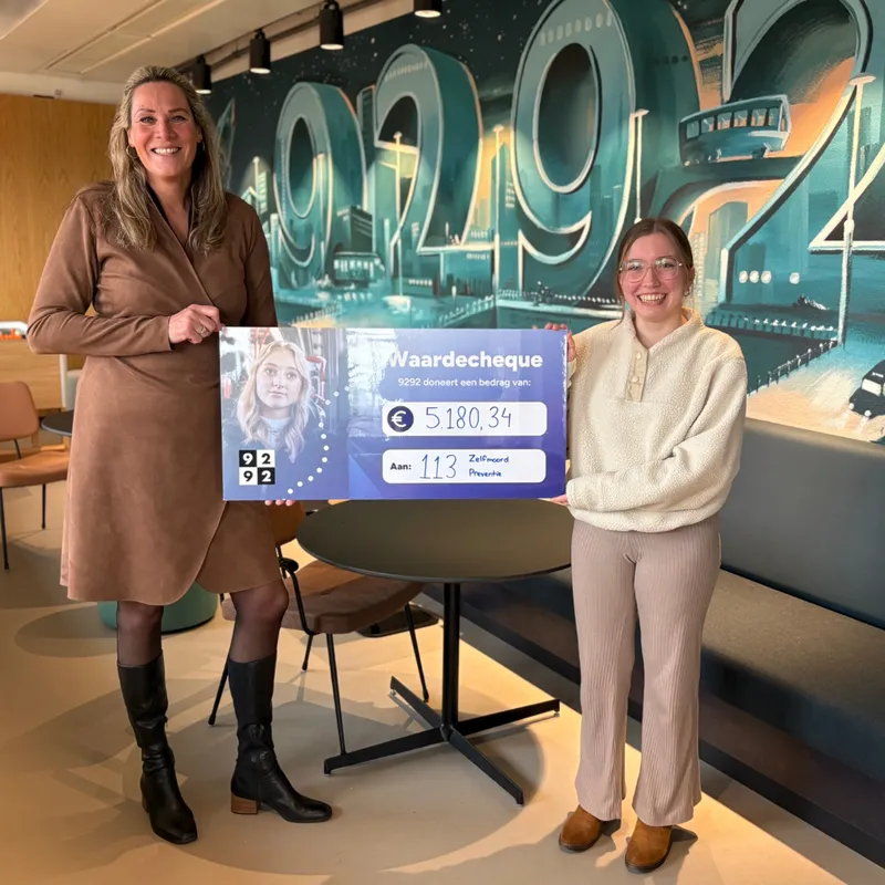 9292 doneert € 5180 aan Stichting 113 Fonds Zelfmoordpreventie