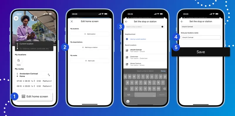 With your favourite stop/station, you can quickly retrieve departure times from a station or stop. Do you want to set this up? Then follow the steps below.